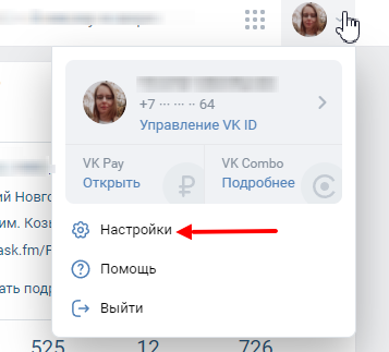 Нажимаем на стрелку рядом со своей фотографией профиля